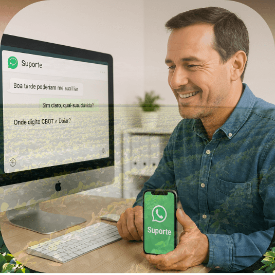 Suporte via WhatsApp de segunda a sexta feira das 09:00 as 16:00 para dúvidas no preenchimento das planilhas em excell, Preço da Soja na Palma da Mão e Cálculo do Prêmio.